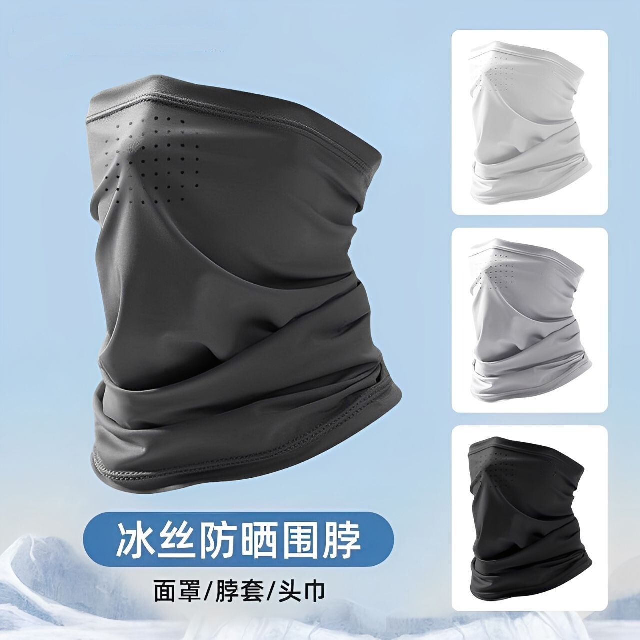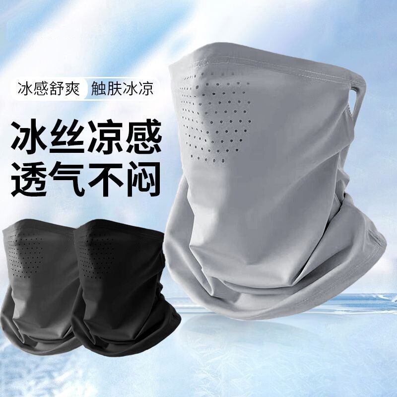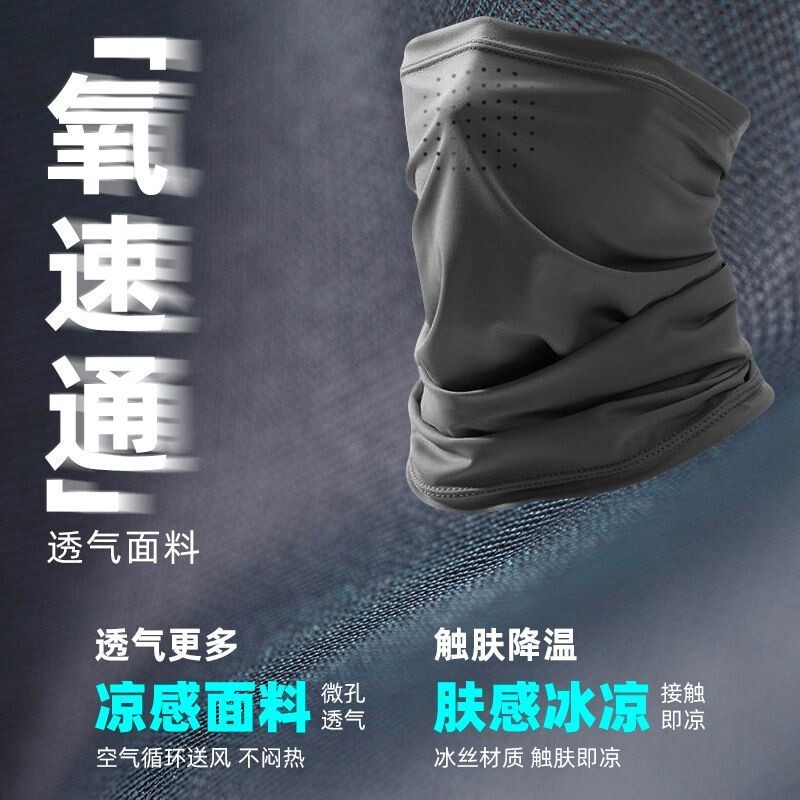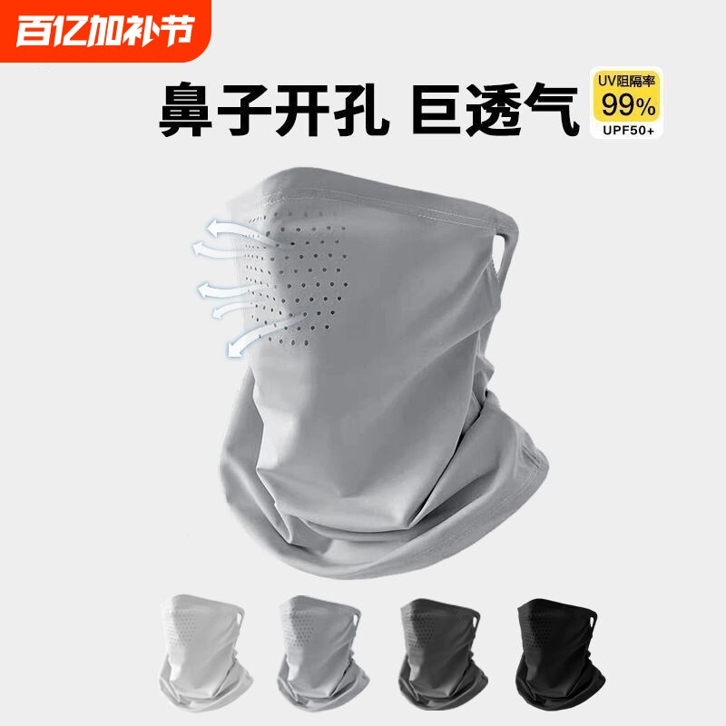防晒面罩男护颈脖套户外骑行面巾钓鱼头巾冰丝围脖遮全脸挂耳面纱