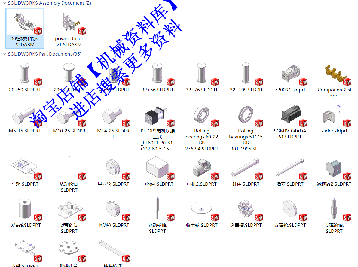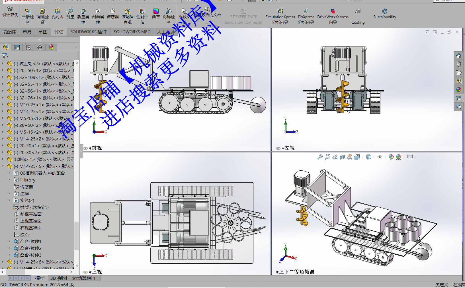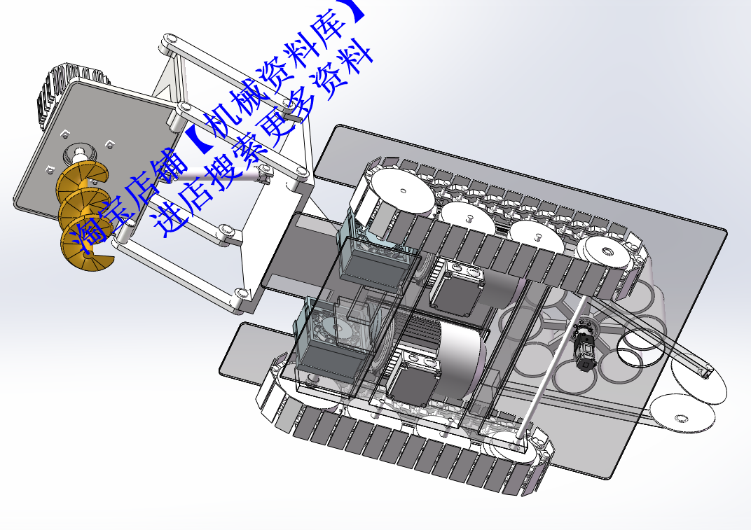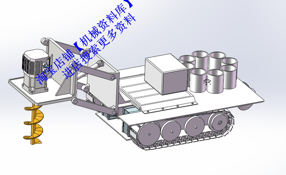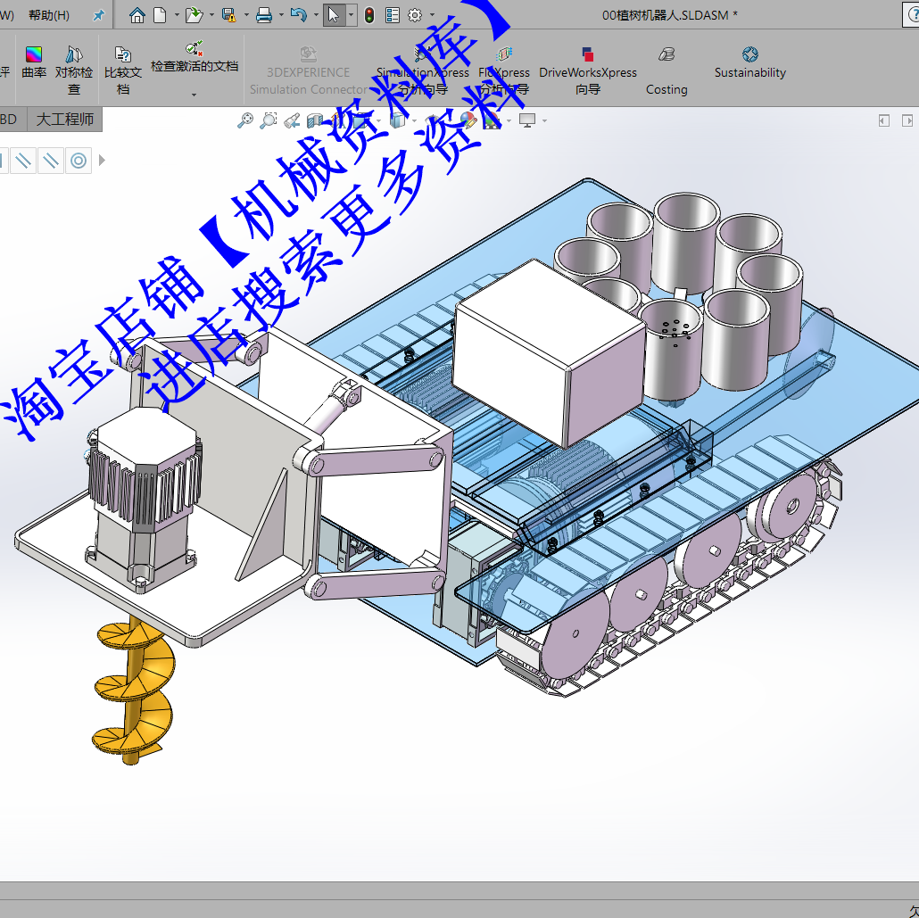 沙漠植树履带机器人小车sw设计三维图纸档3D蛟龙钻孔树苗种植[A45