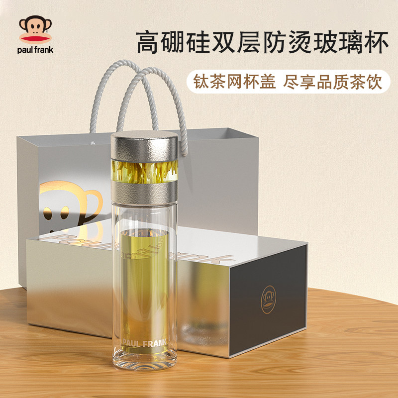 大嘴猴纯钛玻璃杯双层隔热耐高温泡茶男女茶水分离商务钛便携水杯