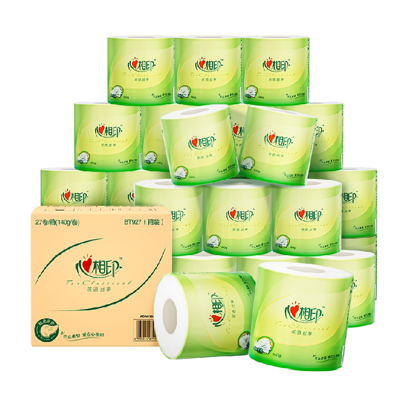 【下拉享优惠】心相印茶语卷筒纸4层140g27卷厕纸家用卫生纸整箱
