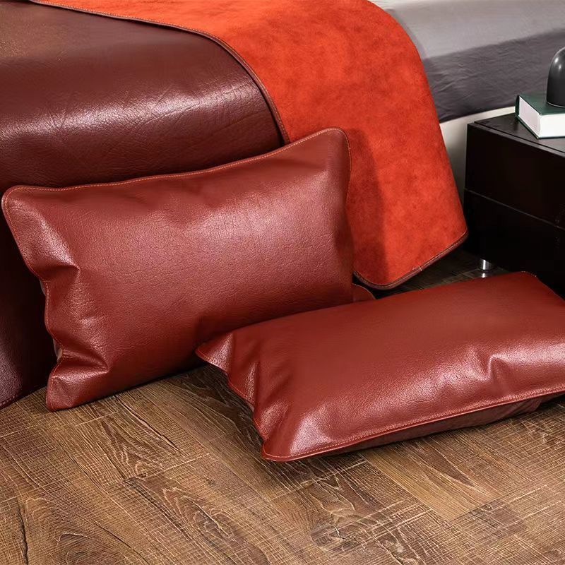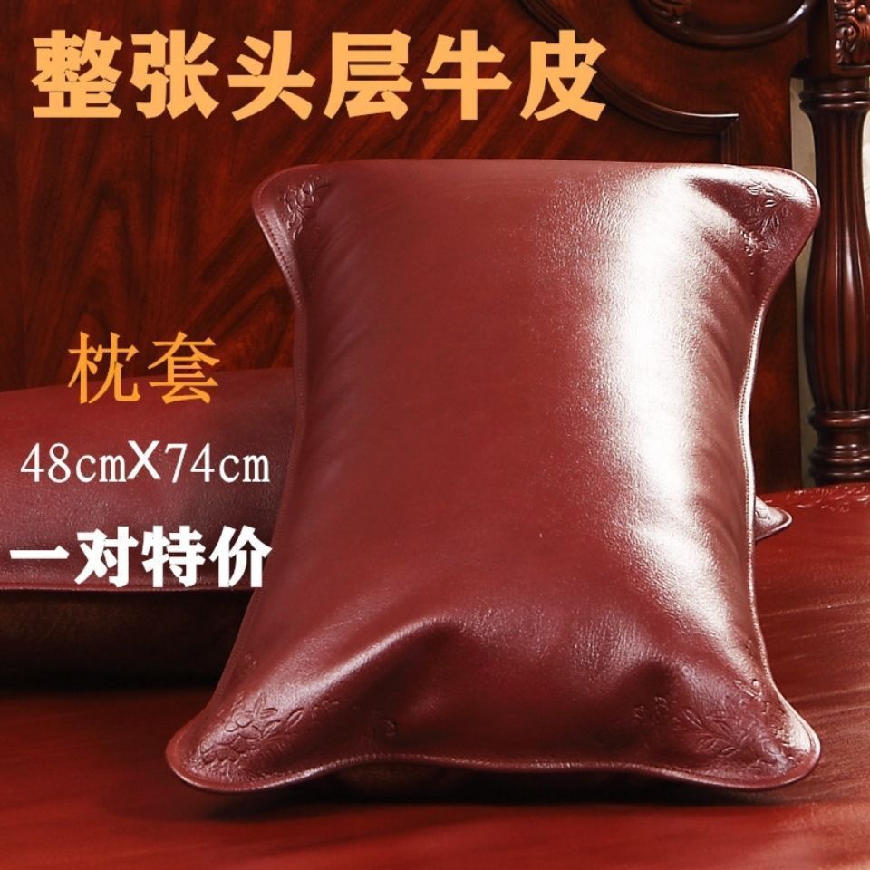 头层真牛皮制作无拼接枕套夏季真皮枕头套单双人床上用品舒适枕席