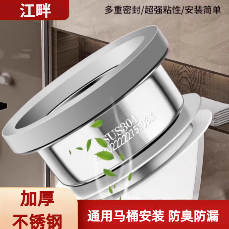 江畔法兰密封圈304不锈钢防臭防漏坐便器底部胶圈一体式配件