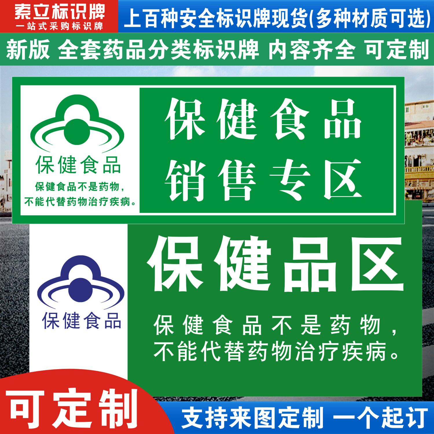 保健食品类销售专区药店药房药台分类标识牌计生用品医疗器械药品类拆零专柜合格区医院指示标贴标语贴纸标签