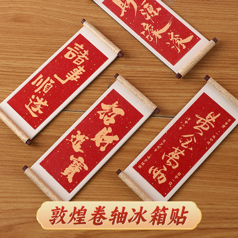 祝福语系列木质卷轴冰箱贴磁贴2025新款个性创意喜庆冰箱门装饰品