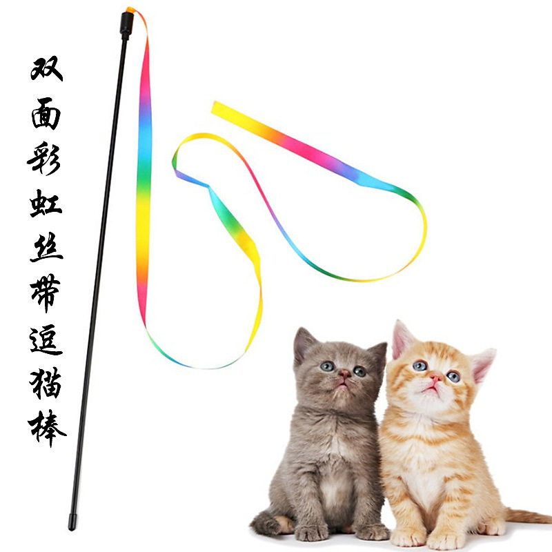 双面彩虹丝带逗猫棒 耐咬彩虹带黑杆猫玩具 自嗨解闷神器猫咪用品