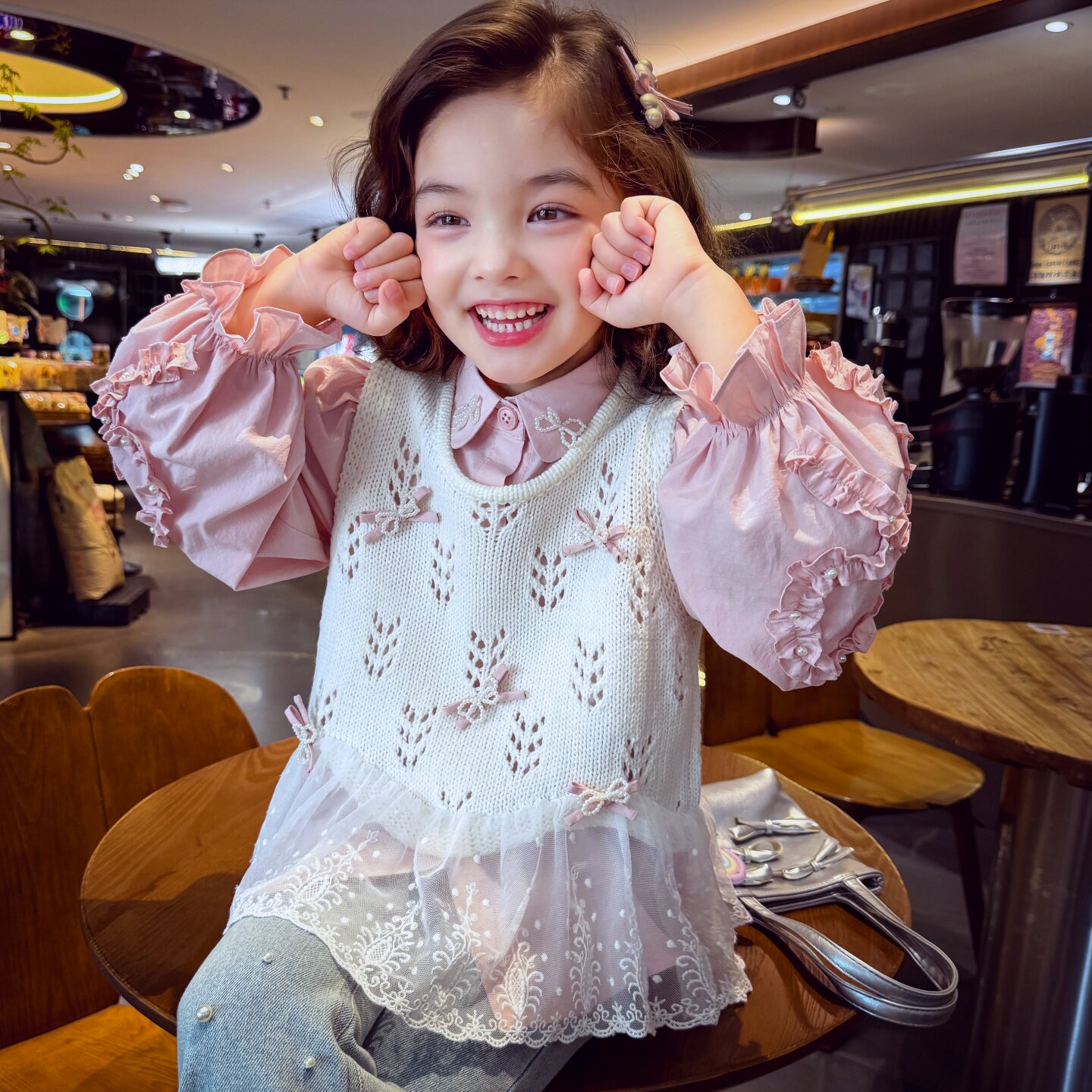米米哈罗女童衬衫春装2026新款洋气儿童灯笼袖衬衣女孩上衣打底衫
