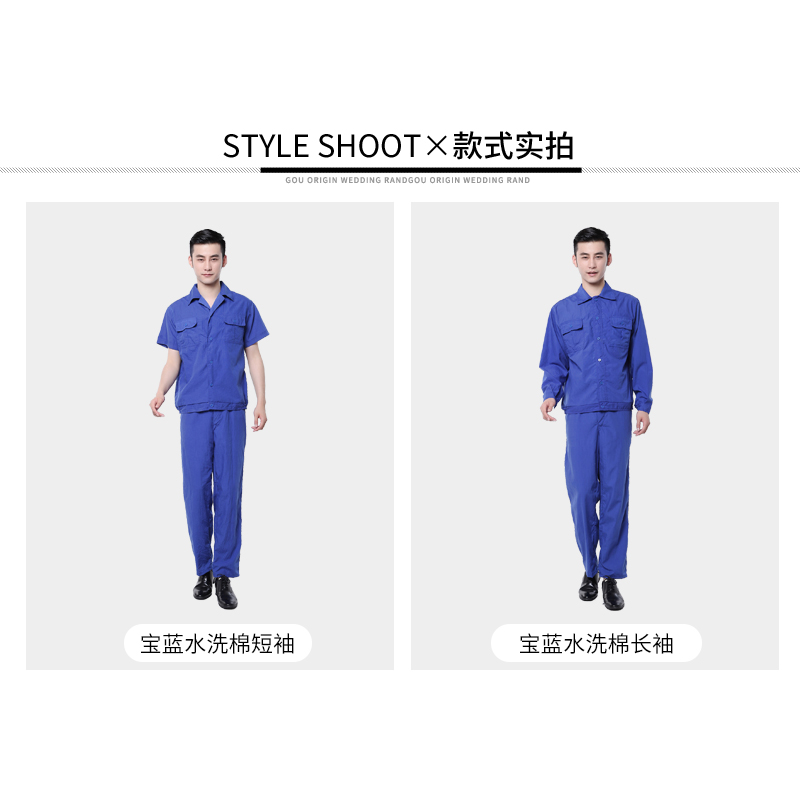 包邮工作服男装工装制服 春夏季厂服长短袖水洗棉 深蓝水洗棉工装
