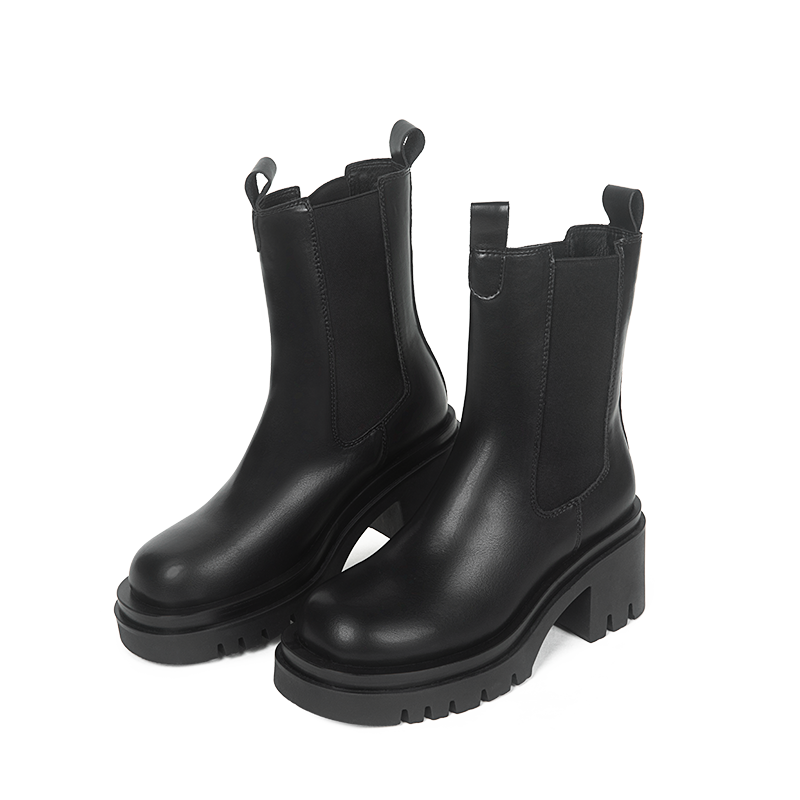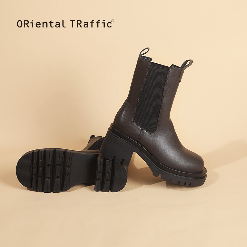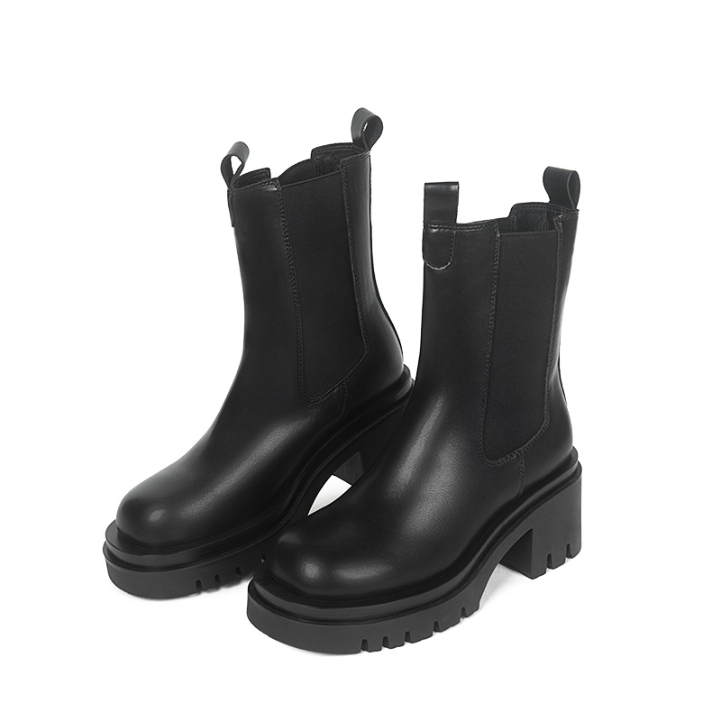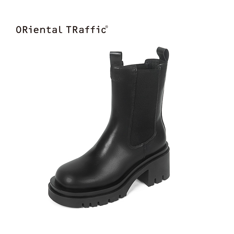 ORTR女鞋 切尔西靴粗跟复古大码百搭短靴时尚高跟烟筒靴