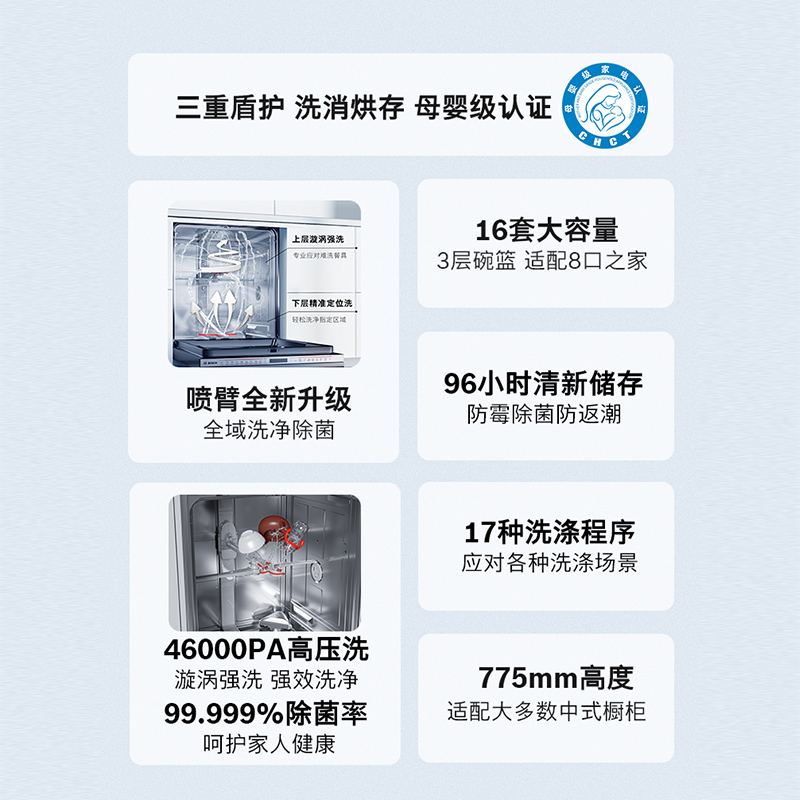 【黑骑士】博世嵌入式智能洗碗机16套沸石全自动家用大容量SJU6Z