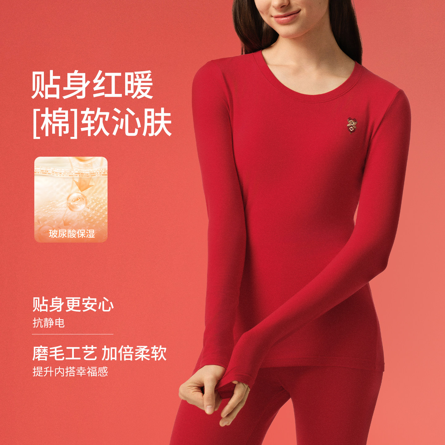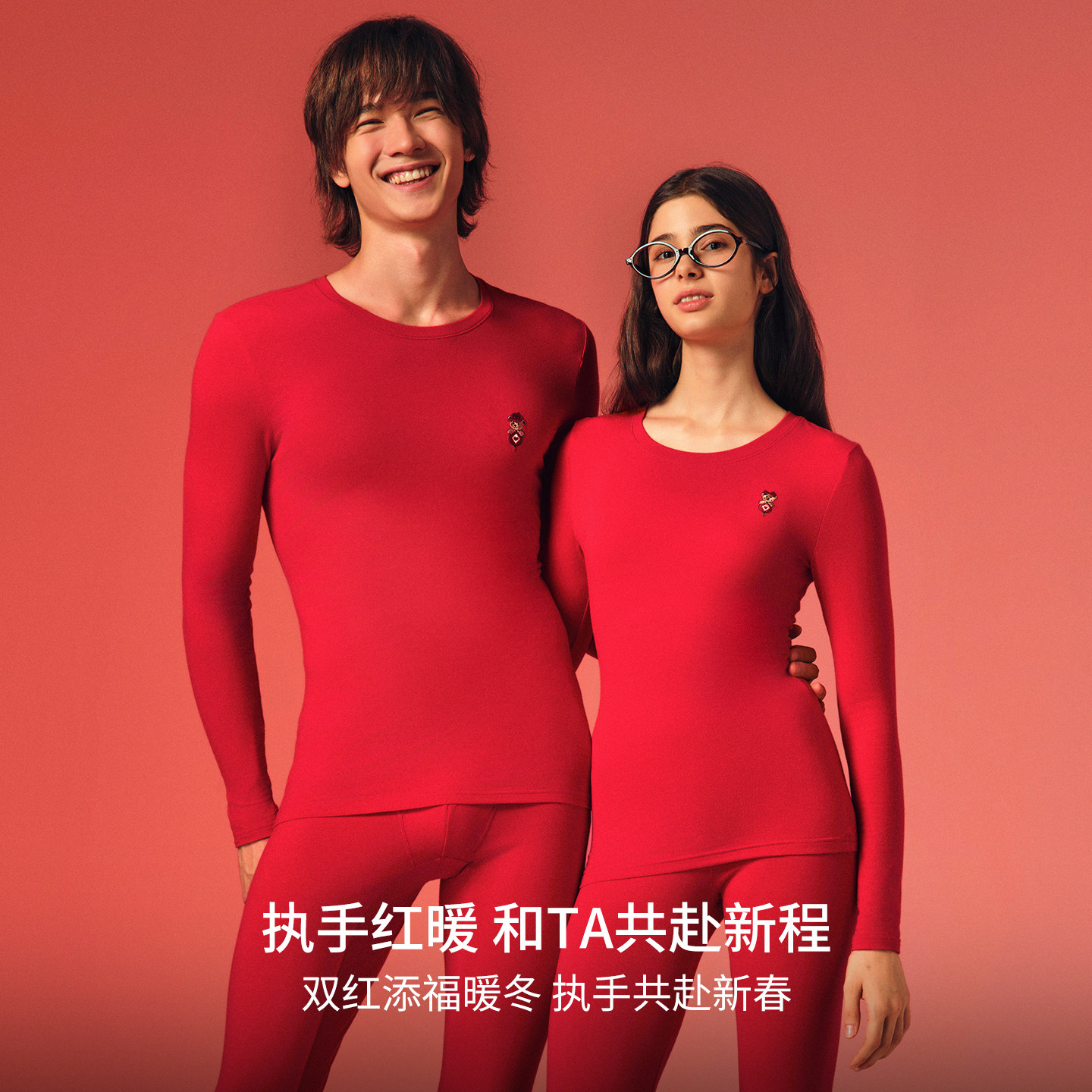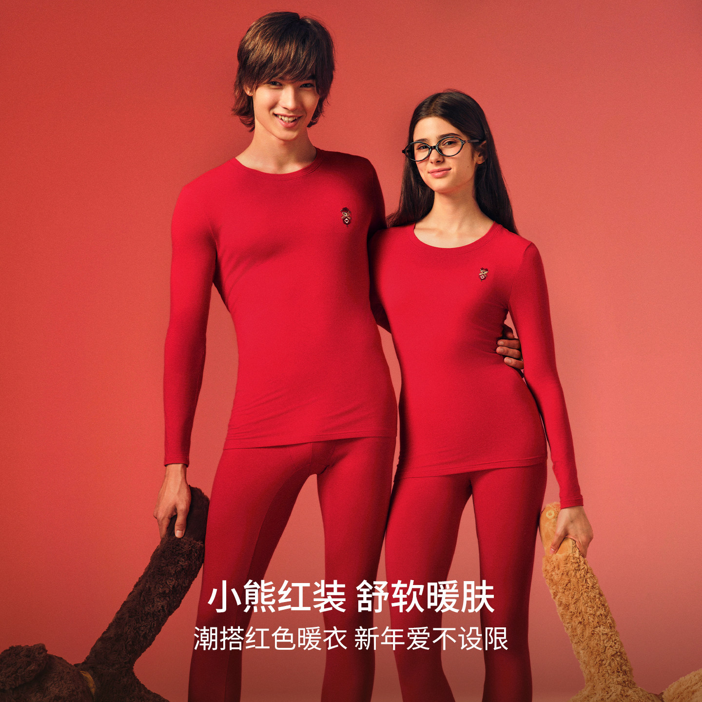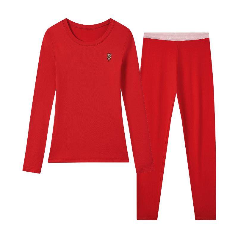 TeenieWeenie小熊红色秋衣女2025新款本命年纯棉秋冬保暖套装情侣