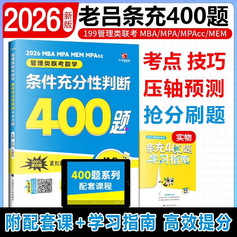 2026老吕考研专硕高分冲刺400题26管理类联考数学条件充分性判断题400题+综合推理+论证逻辑写作考前必背33篇 199联考396经济类