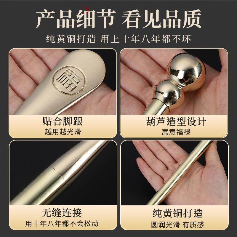 【正品旗舰店】纯黄铜鞋拔子加长柄家用高档轻奢超长不弯腰孕妇金