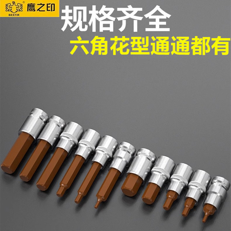 鹰之印花套筒1/2寸大飞12角6角旋具套筒S2加长批头快扳手汽修工具