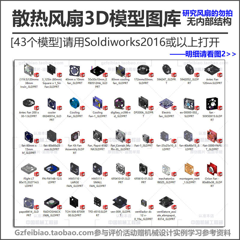 散热风扇3D模型 无内部结构仅供机械设备设计调用 Solidworks标准