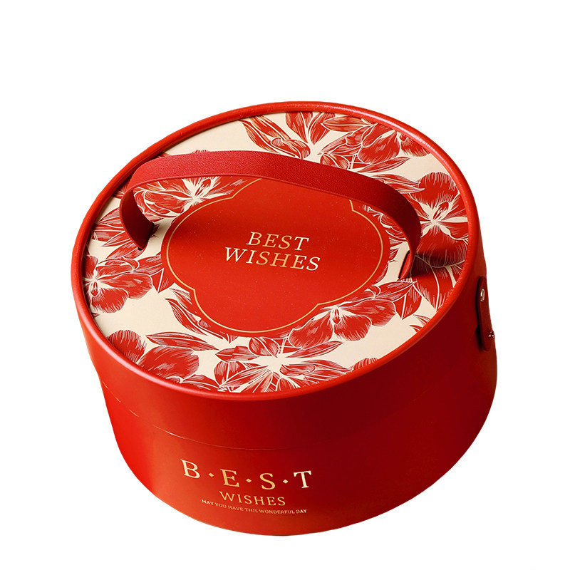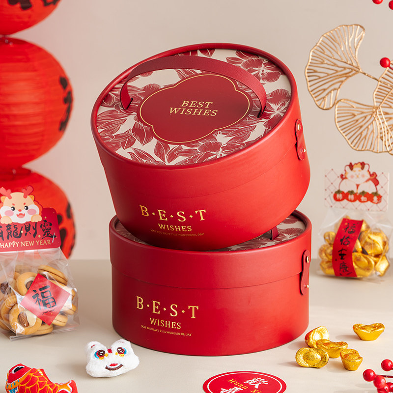 新年礼盒包装年货抱抱桶礼品物食马年空盒子糖果饼干春节红圆2026