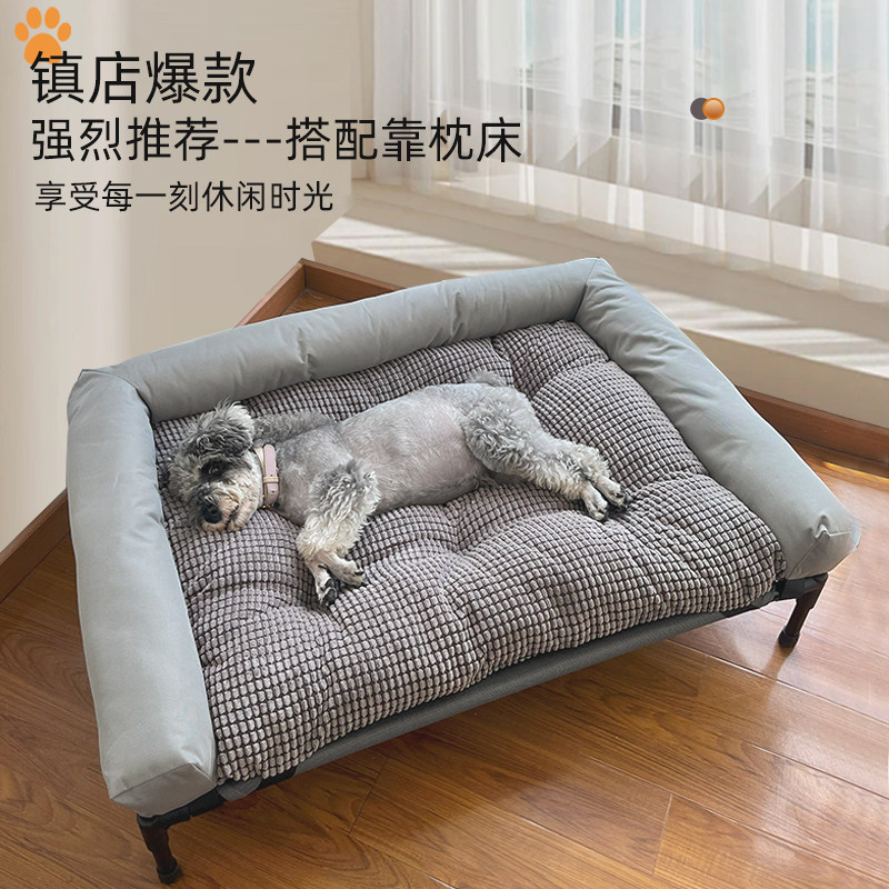 kh宠物行军床可拆洗猫床防潮带围边狗窝大型犬猫窝铁艺离地狗垫床