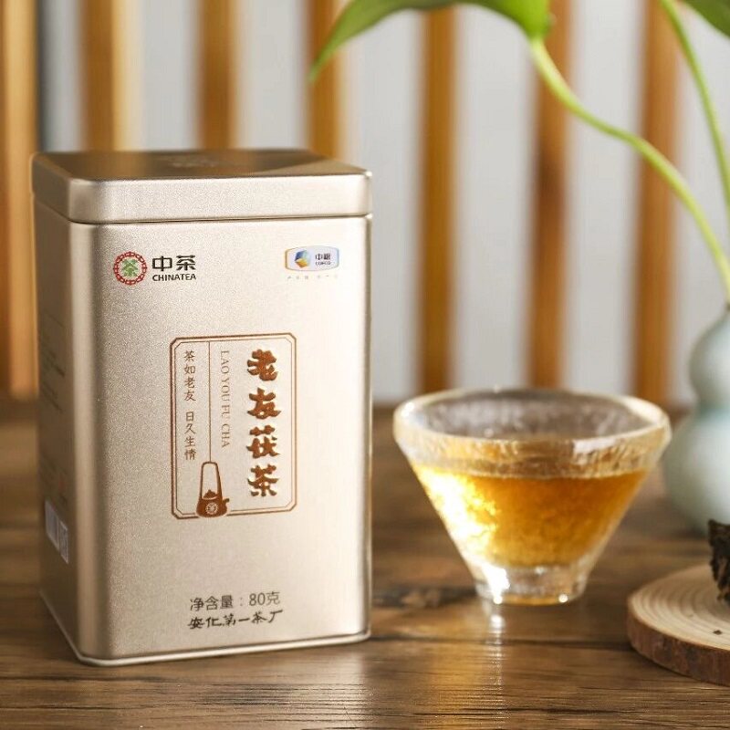 中茶 安化黑茶正宗金花茯茶经典老友茯茶铁罐装黑茶80g 陈年茶叶