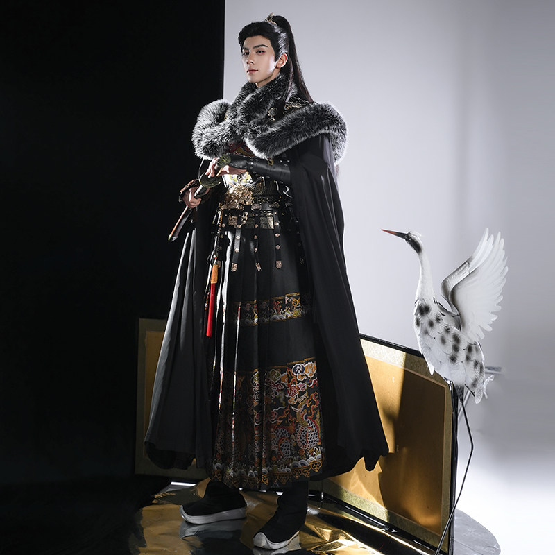 斜塘衣庄明制织金锦衣卫飞鱼服冬款男装汉服仙侠风侠客服斗篷披风