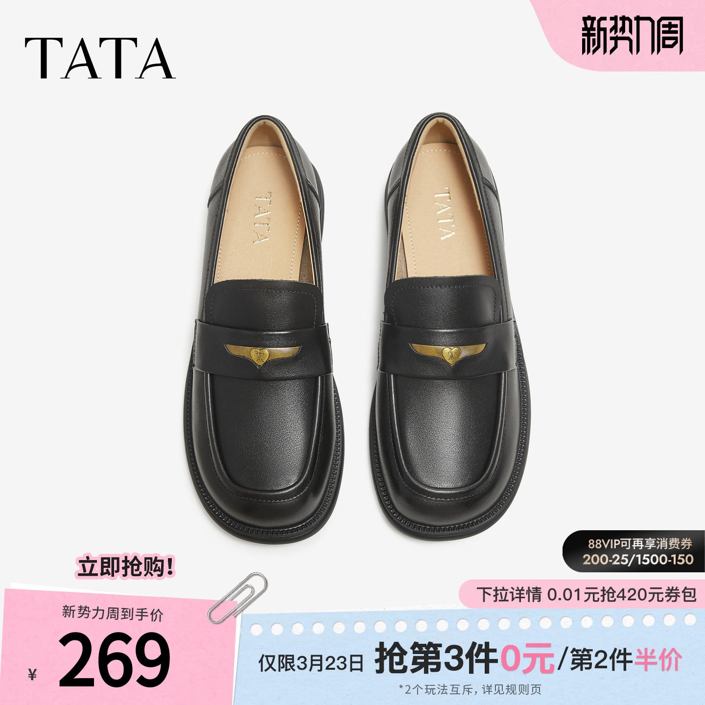 TATA他她女鞋小皮鞋时尚休闲深口乐福鞋一脚蹬英伦单鞋CG901CA5