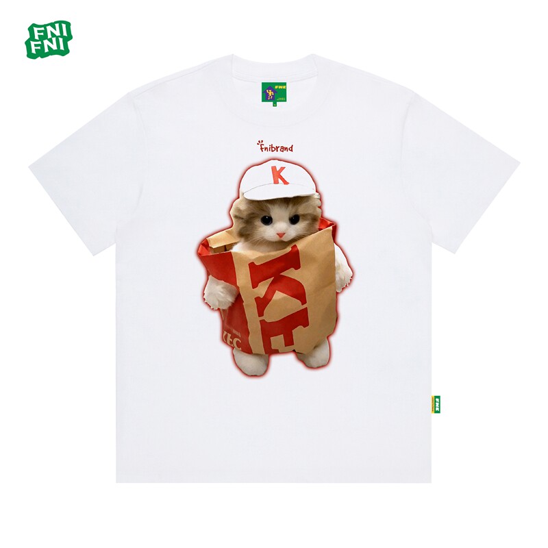 FNI绿标K记快餐小猫美式圆领短袖t恤重磅纯棉男女夏季新款直�