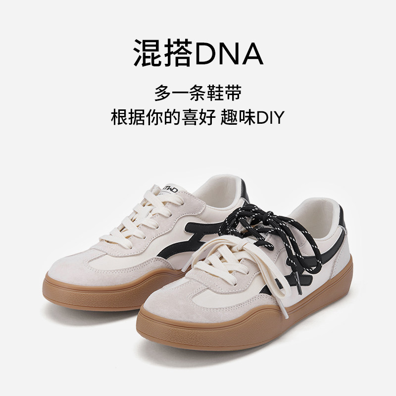 热风百搭德训鞋女款2026年春季新款复古双鞋带休闲鞋轻便女鞋子