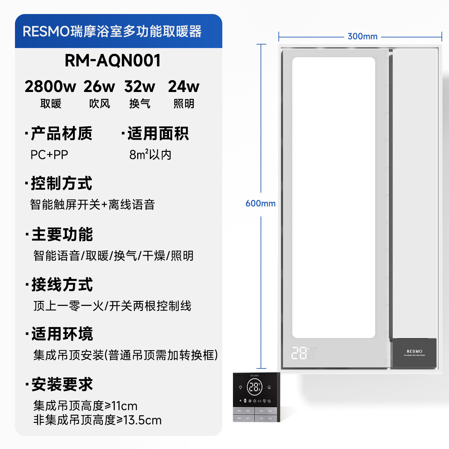 瑞摩风暖浴霸智能卫生间取暖排气扇照明多功能集成吊顶暖风机