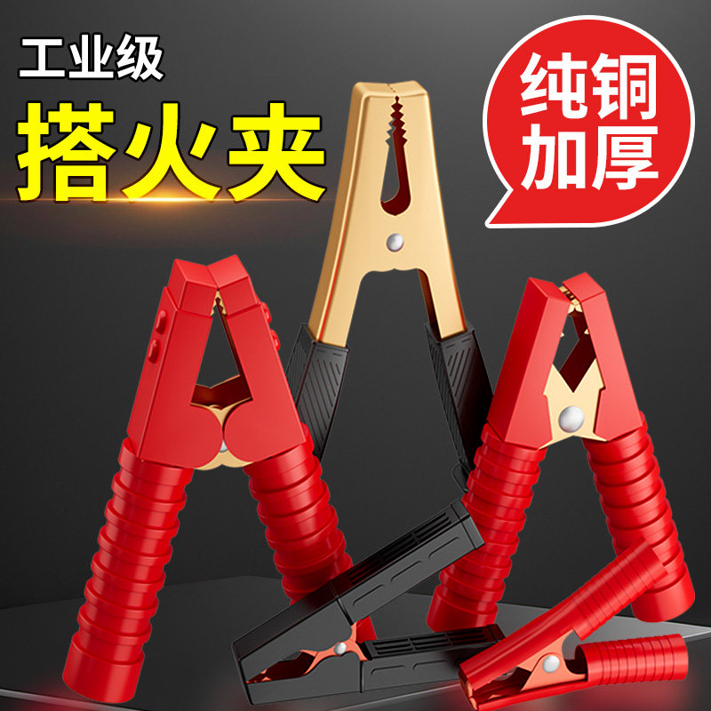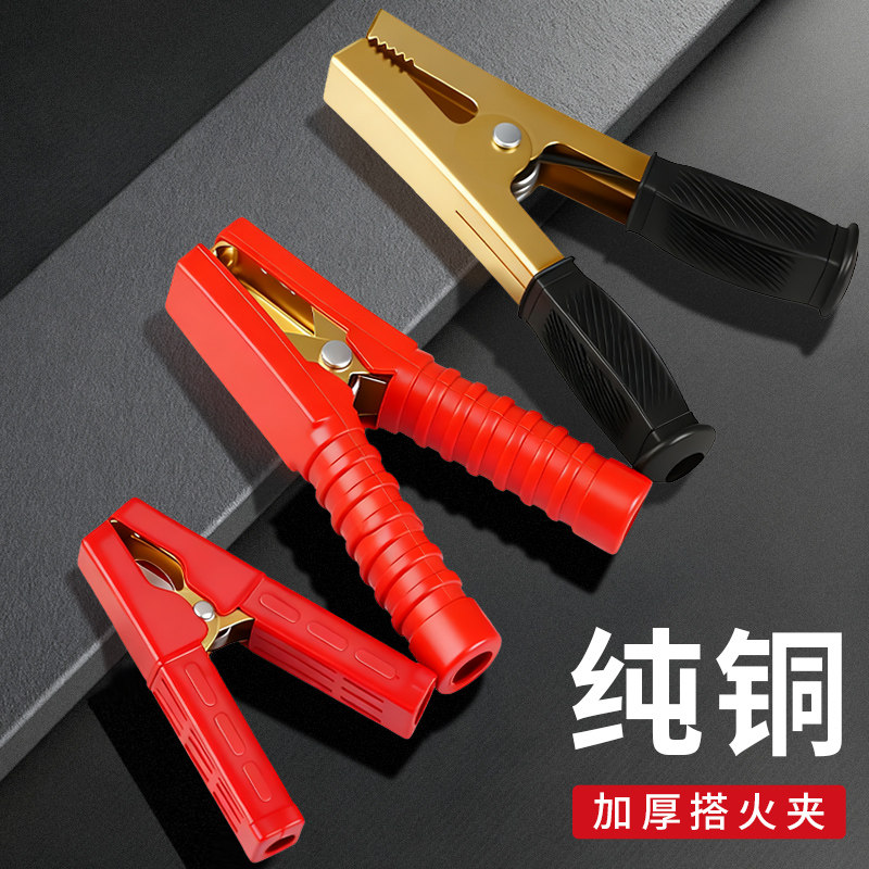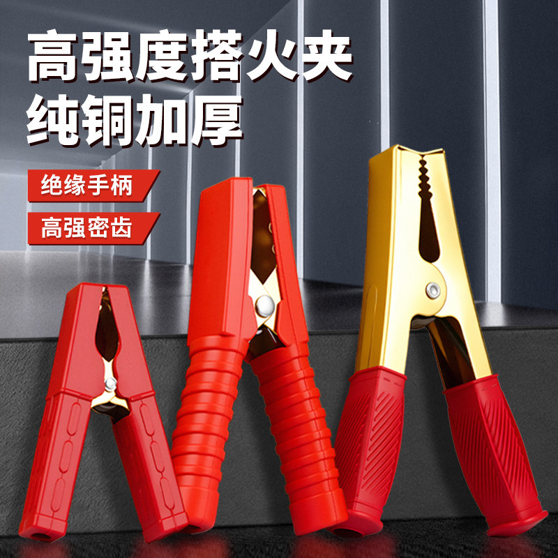 加厚电瓶夹子纯铜汽车蓄电池搭火连接线夹子充电器卡大小号鳄鱼夹