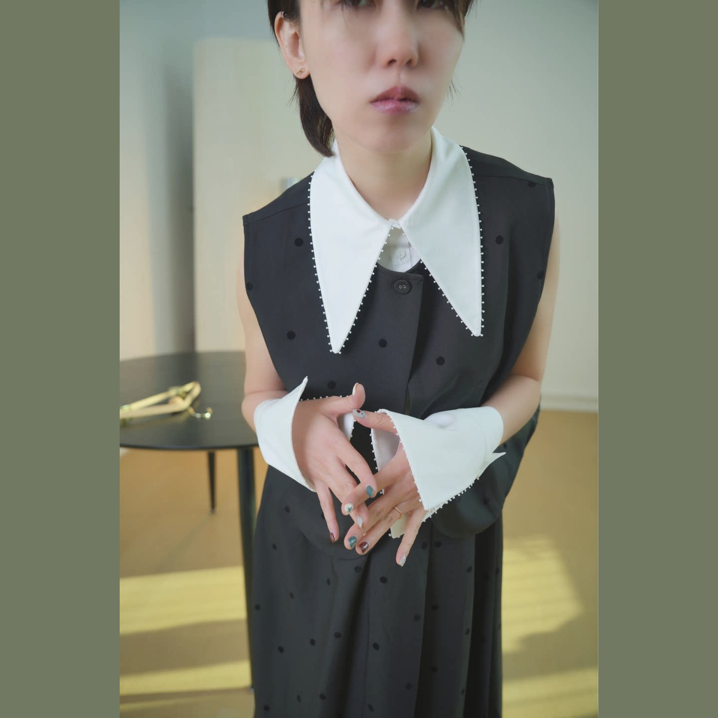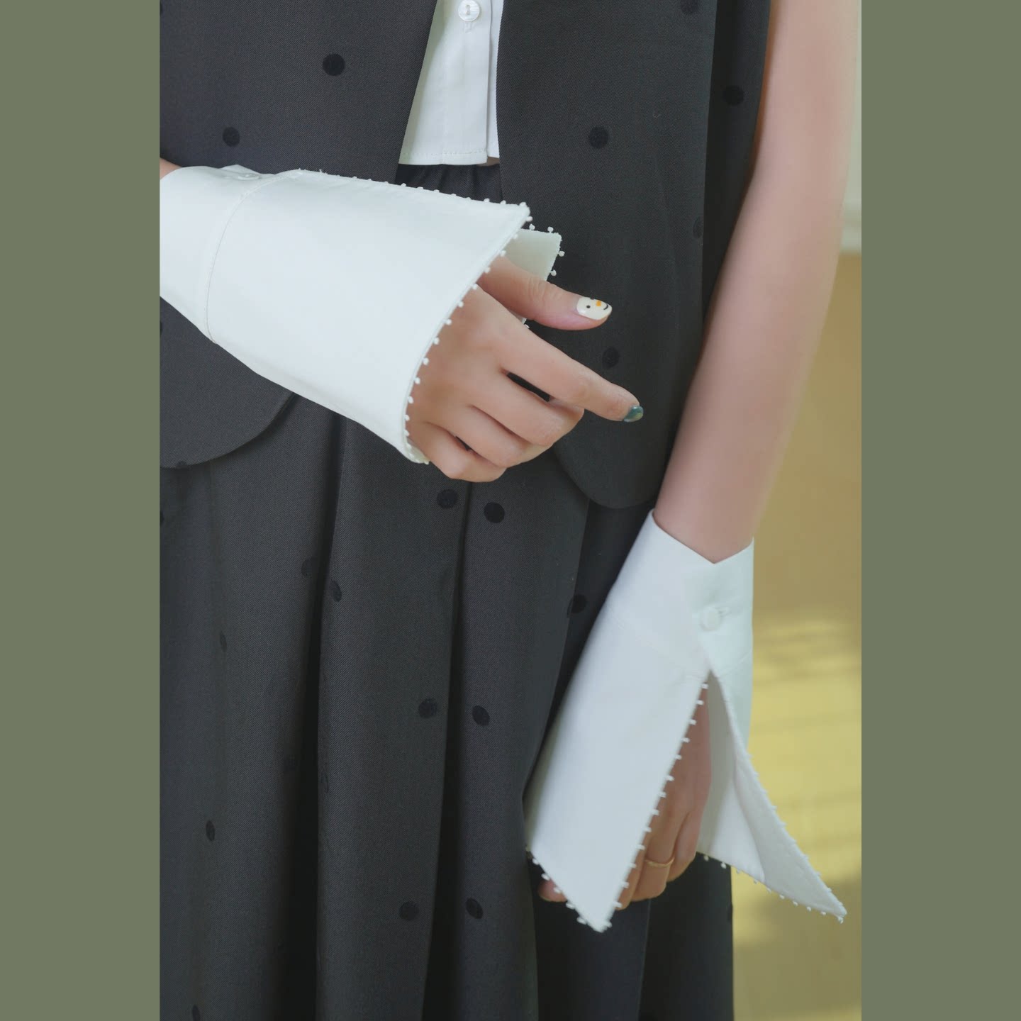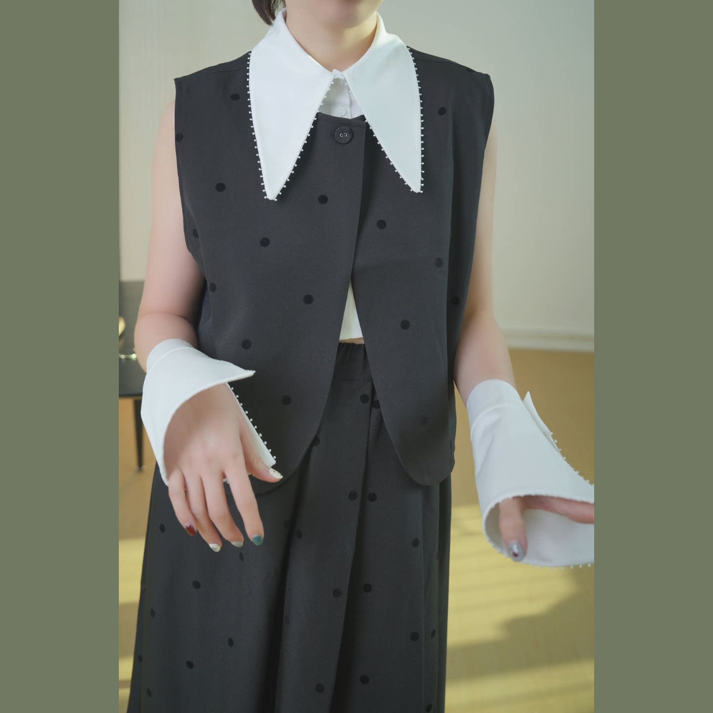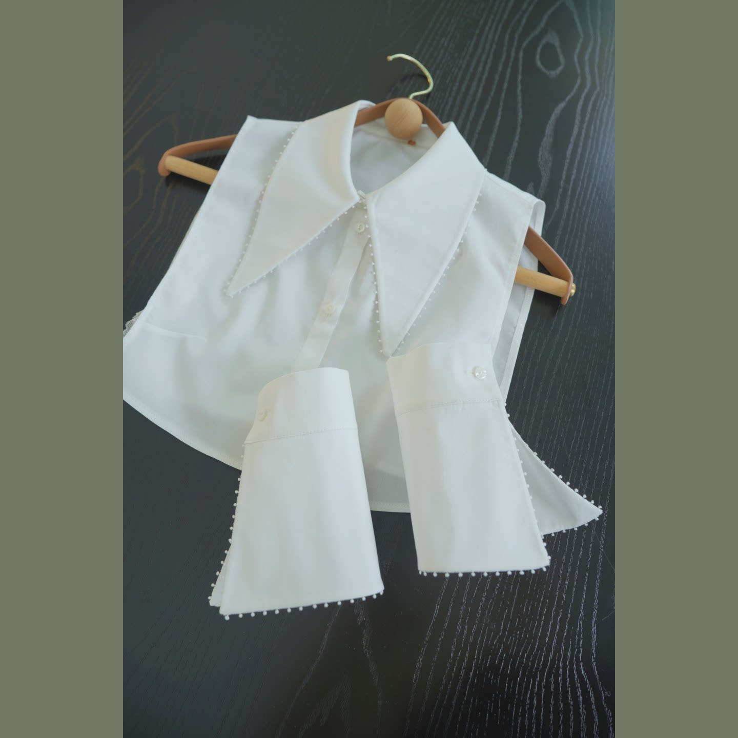 静酷时髦~经典焕发新生高级模块化假领子+袖套白色尖领
