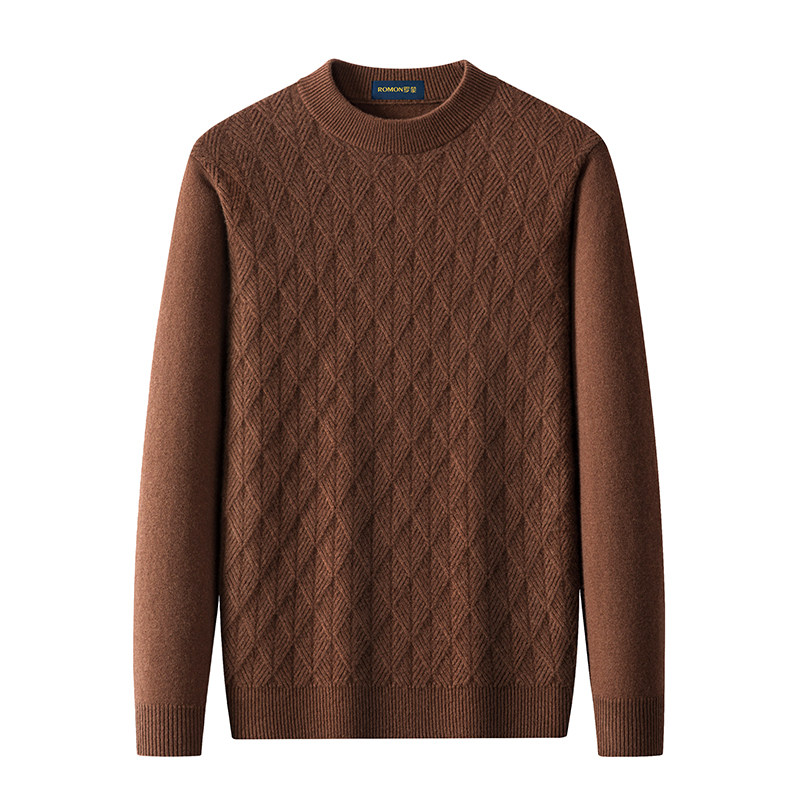 罗蒙100%纯羊毛衫男士半高领加厚冬季毛衣中领针织提花圆领羊绒衫