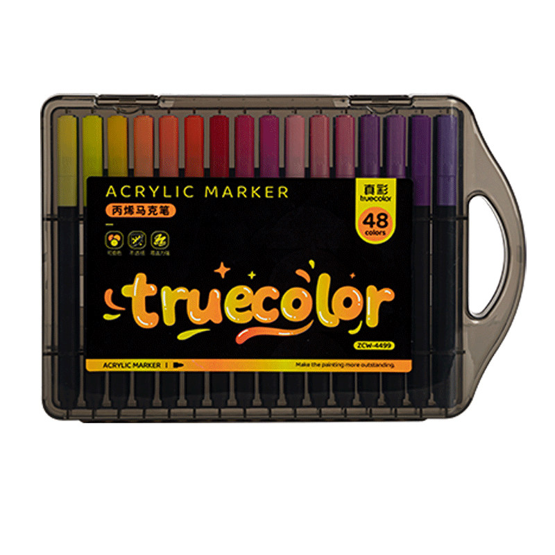真彩小黑盒丙烯马克笔颜色笔24色小学生可叠色美术专用幼儿园画画48色颜料笔画笔儿童可水洗无毒水彩笔不透色