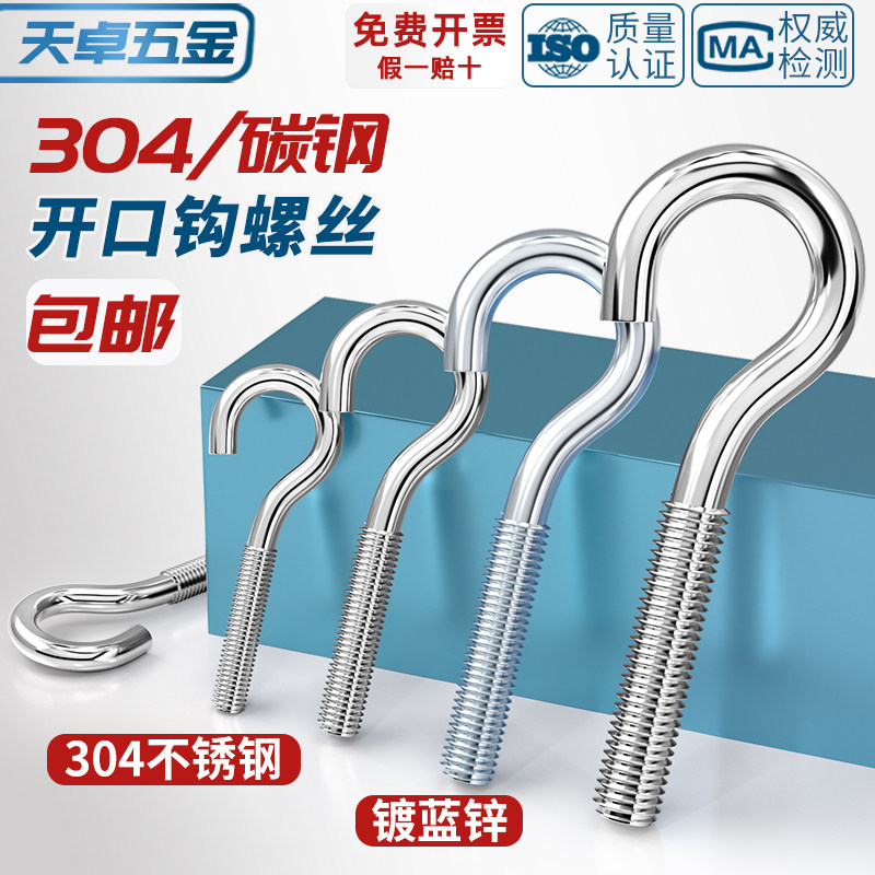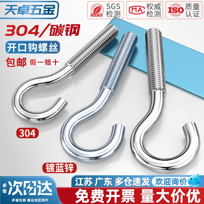 铁镀锌/304不锈钢开口挂钩羊眼机牙螺丝钉吊环带圈螺栓4M5M6M8M10