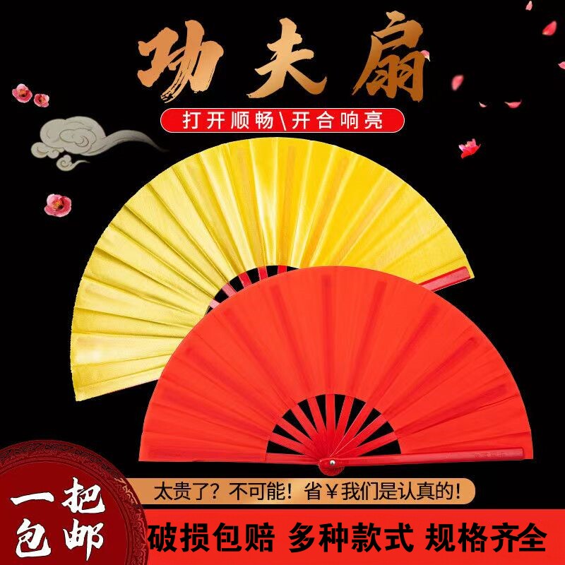 功夫扇儿童成人太极扇子双面金红色幼儿园做早操响扇学生舞蹈扇子