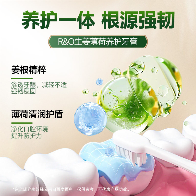 RO生姜薄荷牙膏清新口气长效保护牙龈出血祛除牙渍口腔异味抑菌