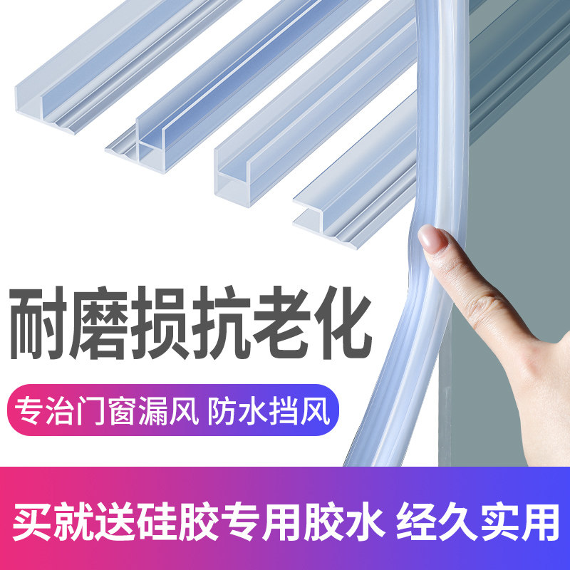 浴室玻璃门防水密封条推拉门磁吸胶条门缝无框窗防撞淋浴房挡水条