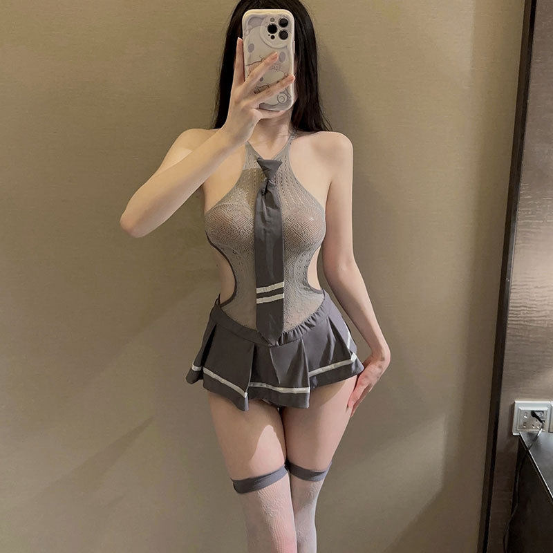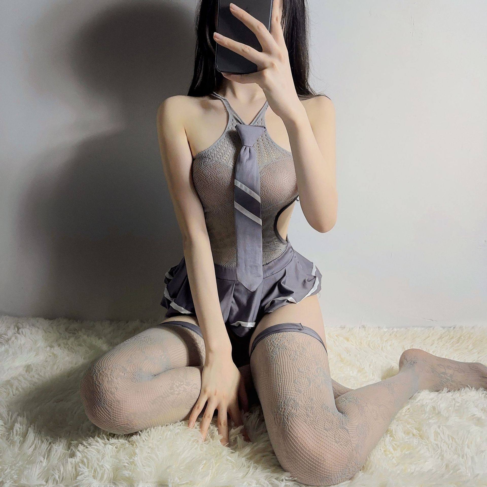 【私慕】jk性感可爱套装学生制服丝袜诱惑一体镂空暴露网衣裙qqny