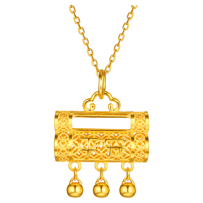 金至尊平安同心锁黄金吊坠女新款 足金999平安锁长命锁金挂坠礼物