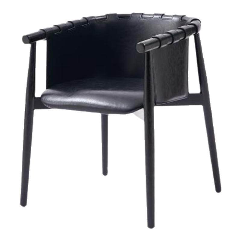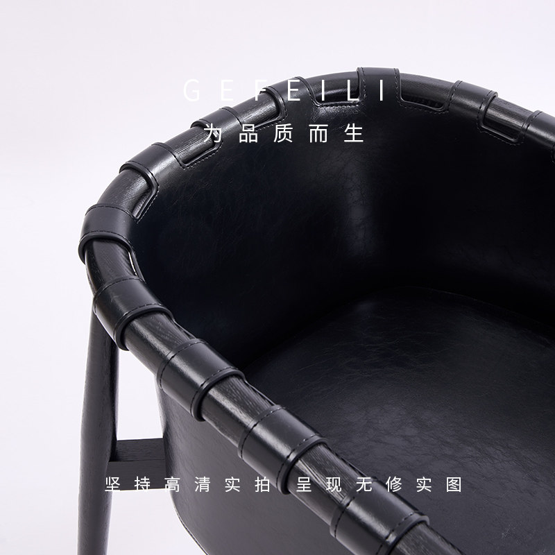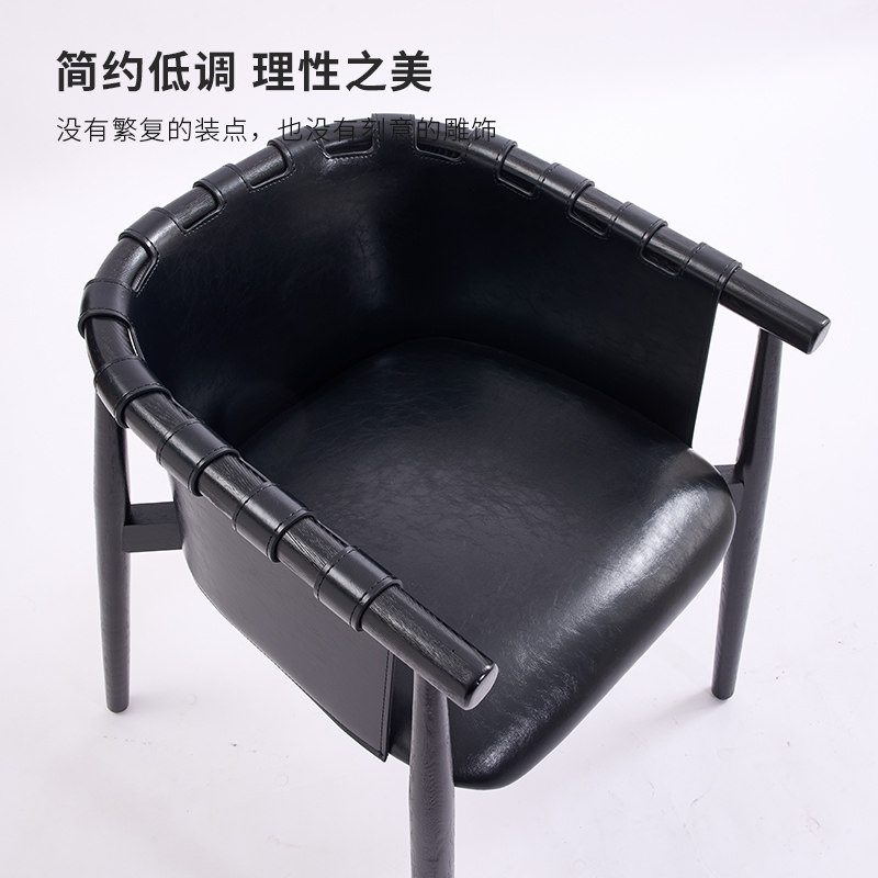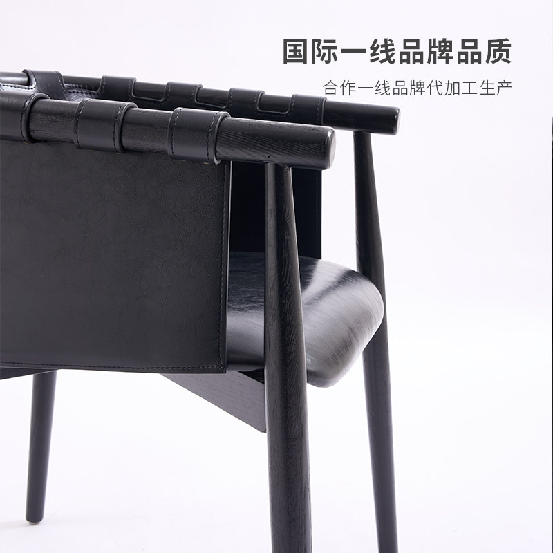 意式极简现代实木白蜡木餐椅家用马鞍皮扶手椅轻奢客厅休闲椅单椅