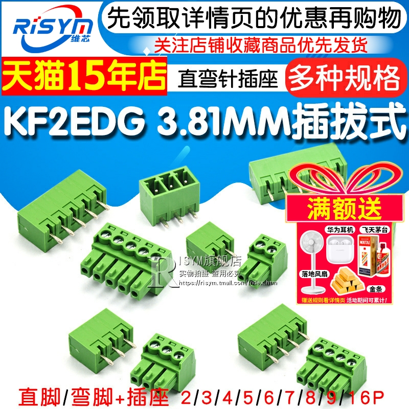 KF2EDG 3.81MM插拔式pcb接线端子弯直针+插座2/3/4/5/6/7/8/9/16p