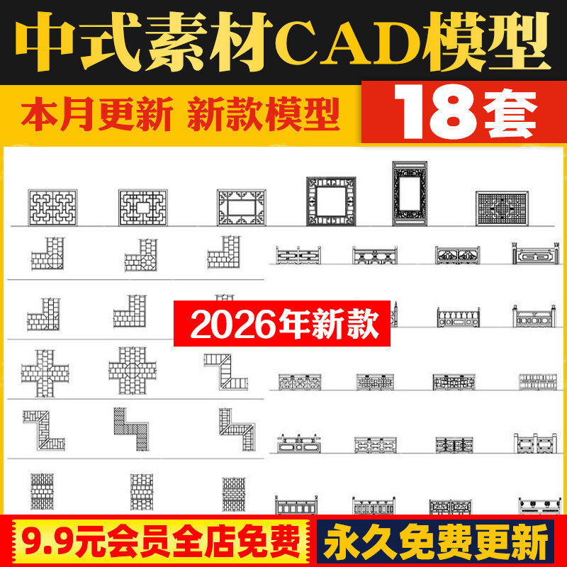 明清中式古典材家具隔断栏杆门窗柱子角花陈设挂画CAD施工图图库
