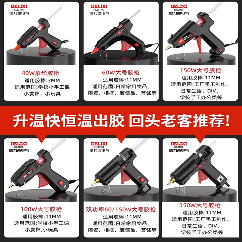 德力西电气150W热熔胶枪儿童DIY手工家用热胶枪大功率热熔枪热熔