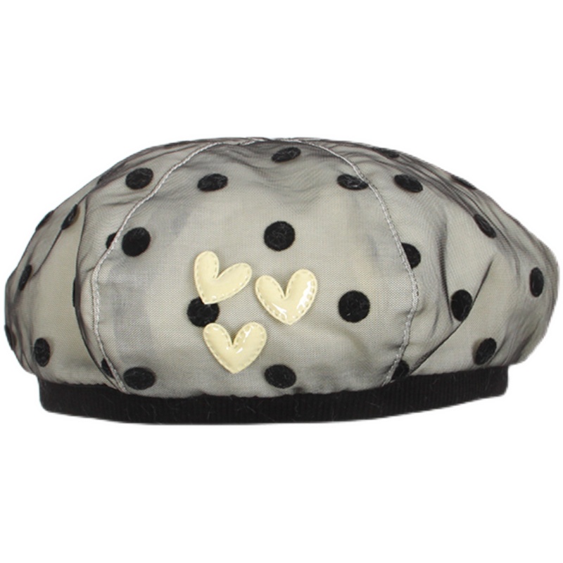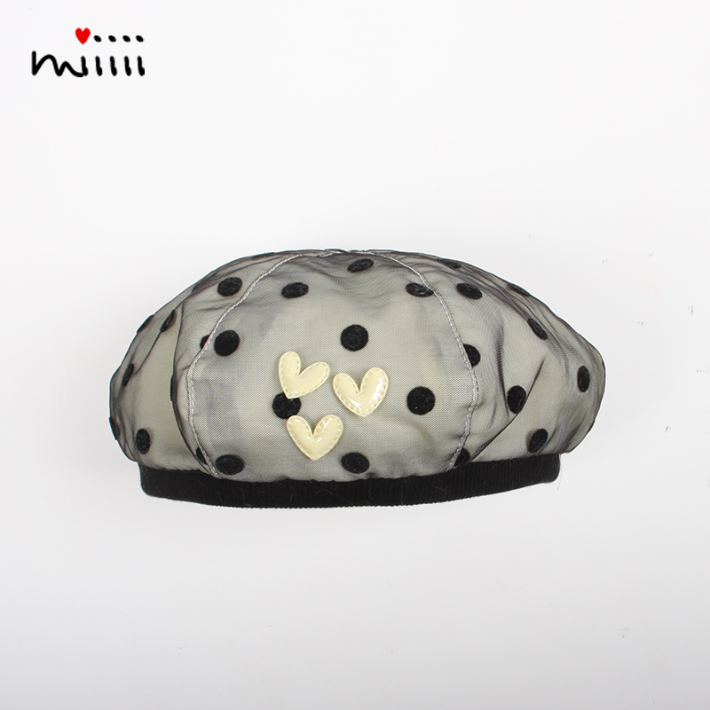女童贝雷帽初秋季薄款纯棉植绒网纱波点婴儿童女宝宝大童亲子帽子