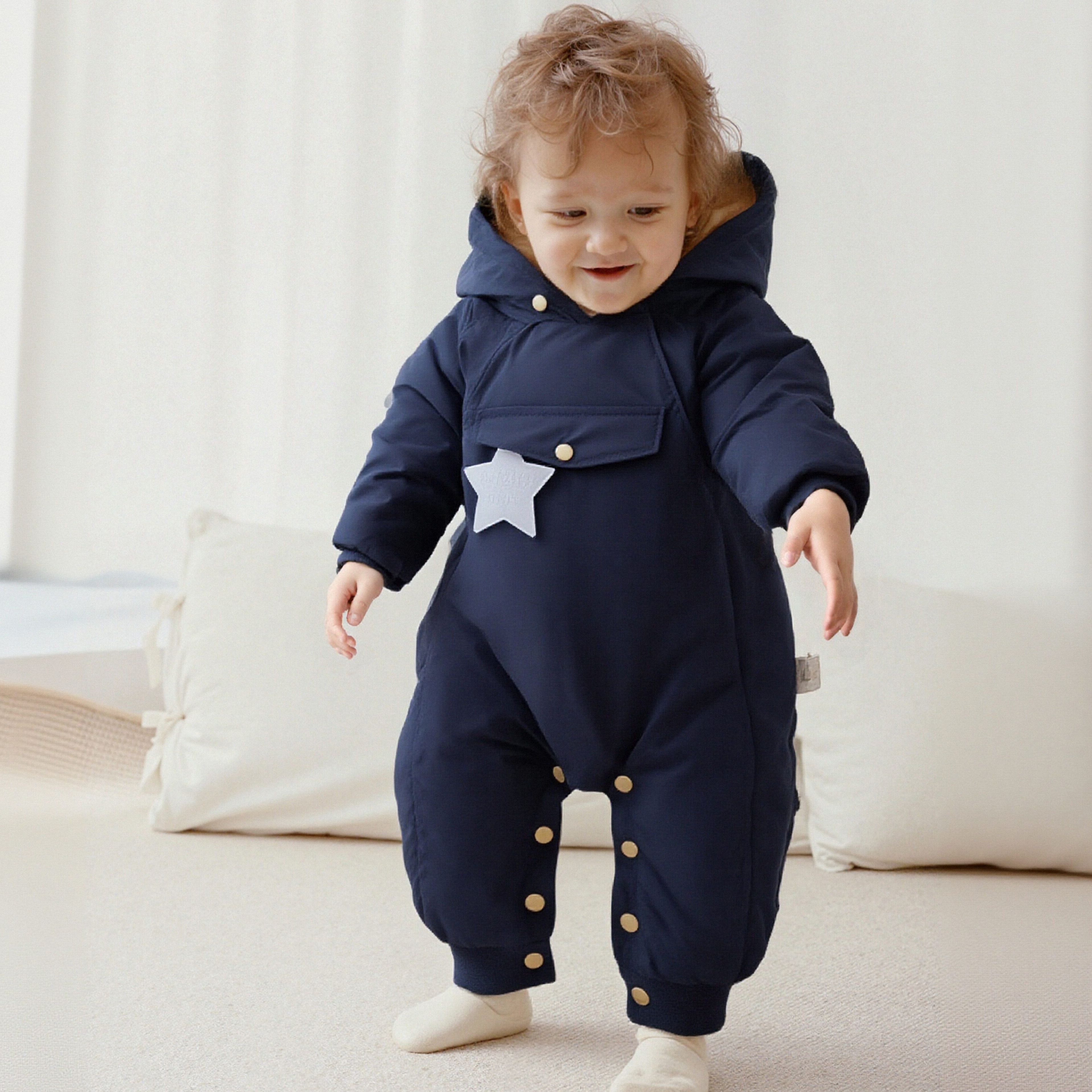 小月龄宝宝夹棉连体衣新生儿棉服a类外出婴儿衣服秋冬