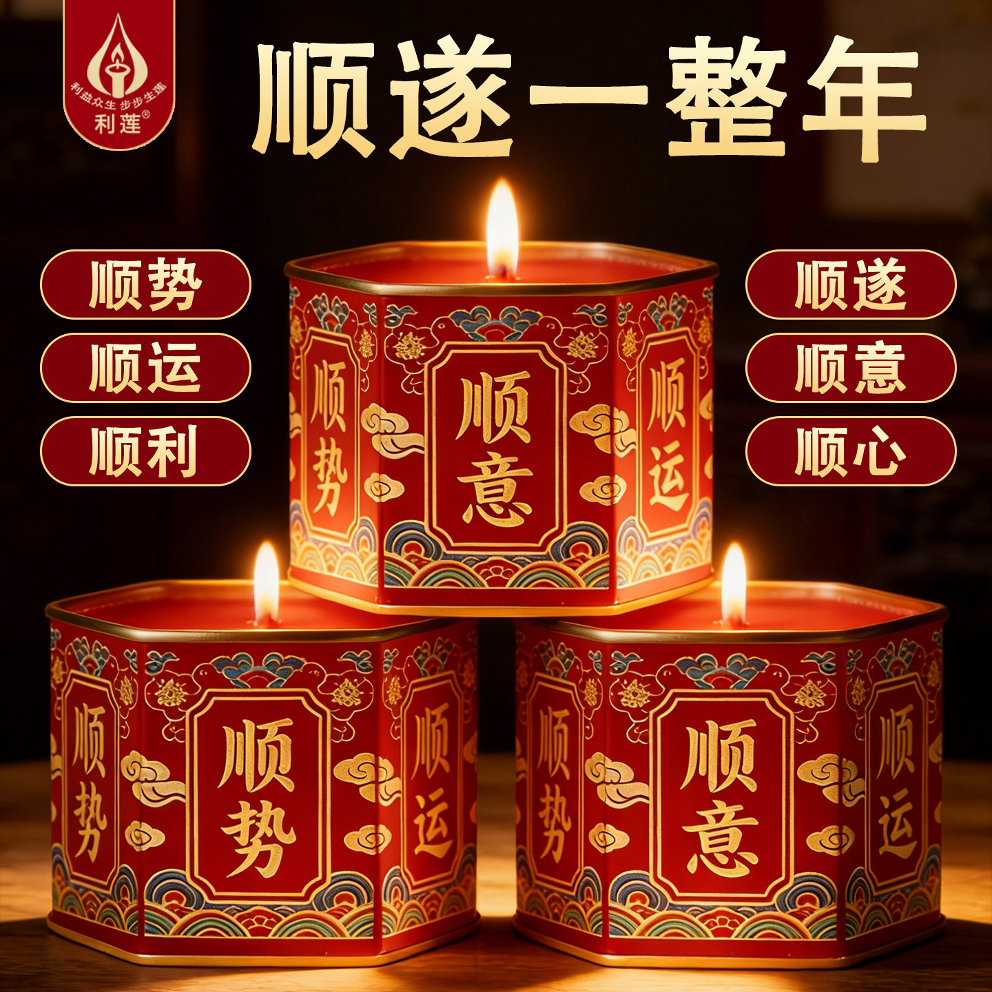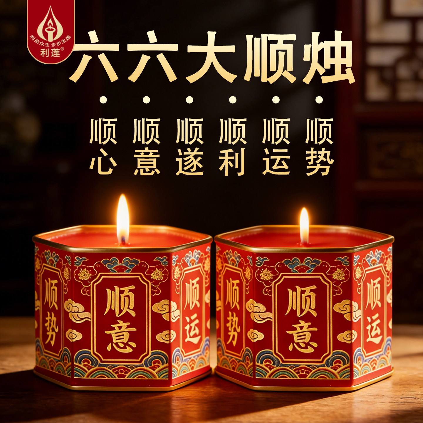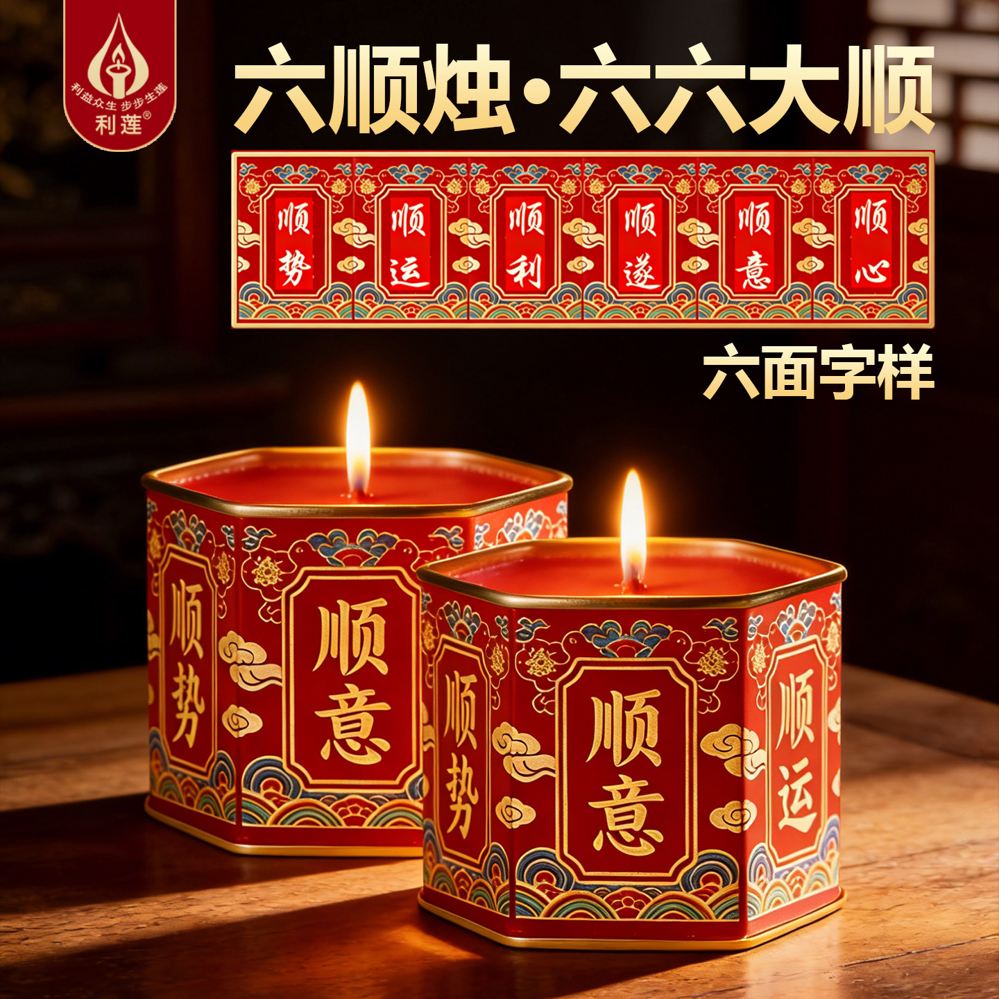 利莲六六大顺中式新潮蜡烛供佛装饰摆件环保无烟节庆用品礼品顺遂