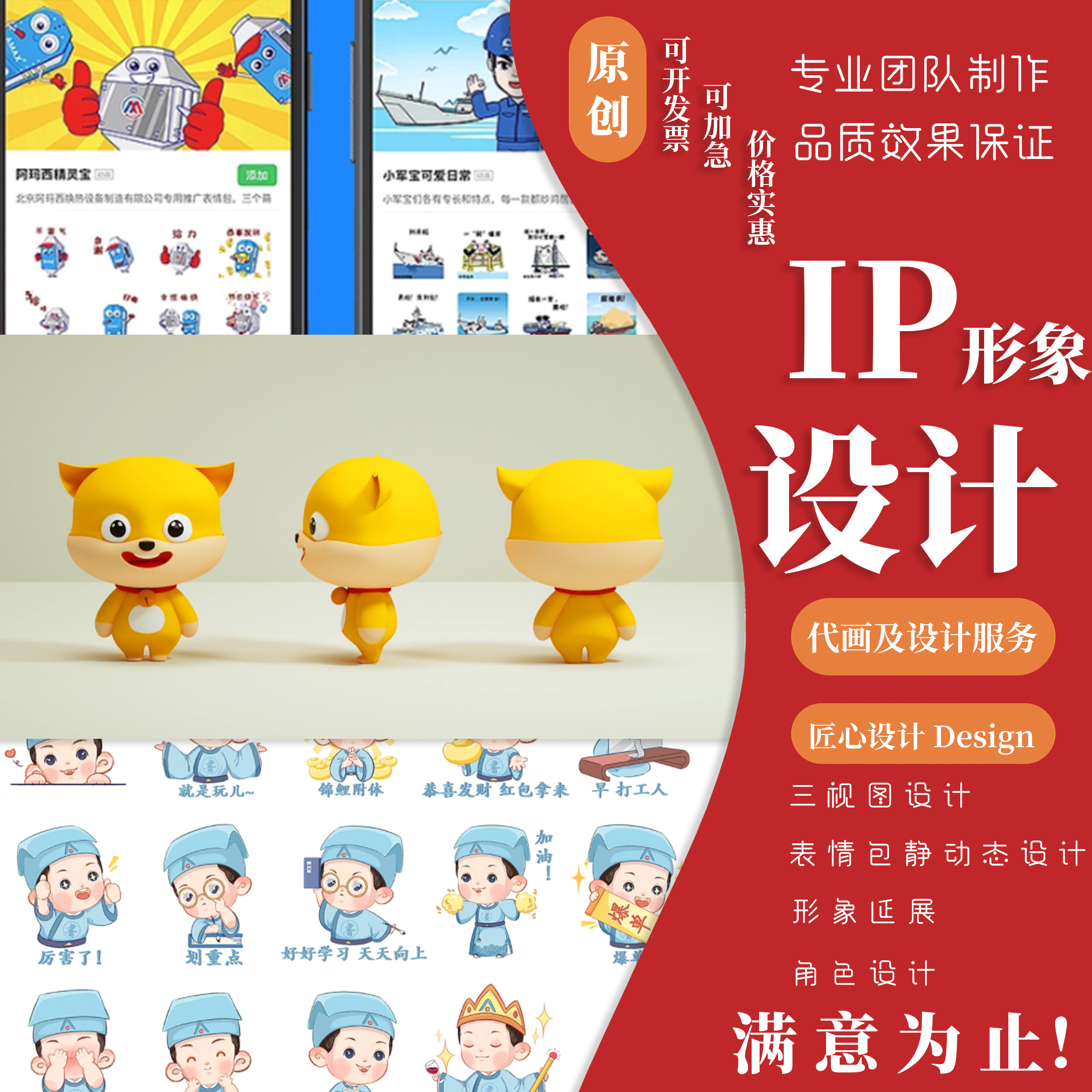 ip形象设计卡通吉祥物定制微信表情包制作动漫人物三视图代做建模