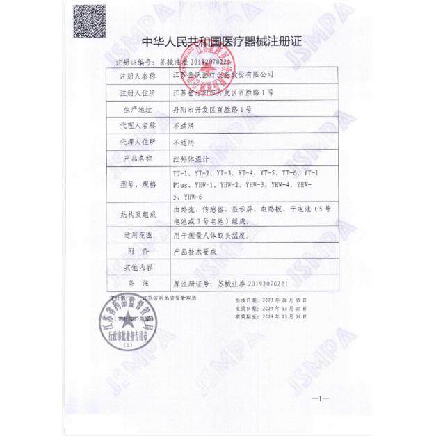 鱼跃婴儿体温仓红外线电子温度计家用医专用精准人侧温额温YHW-1