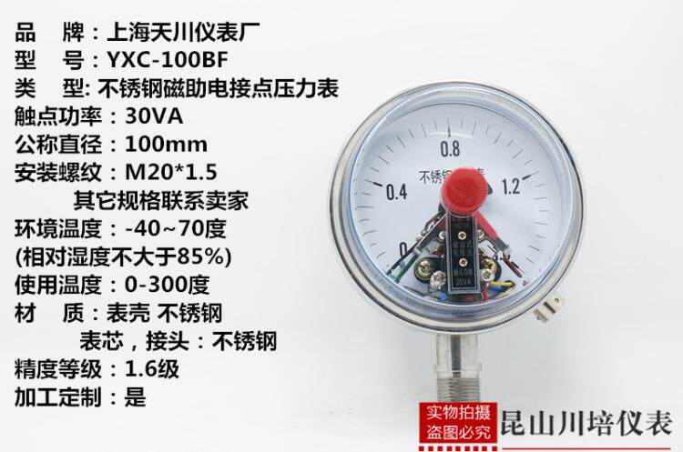 上海天川 不锈钢电接点压力表耐高温防腐YXC-100BF YXC-100ZT/BF