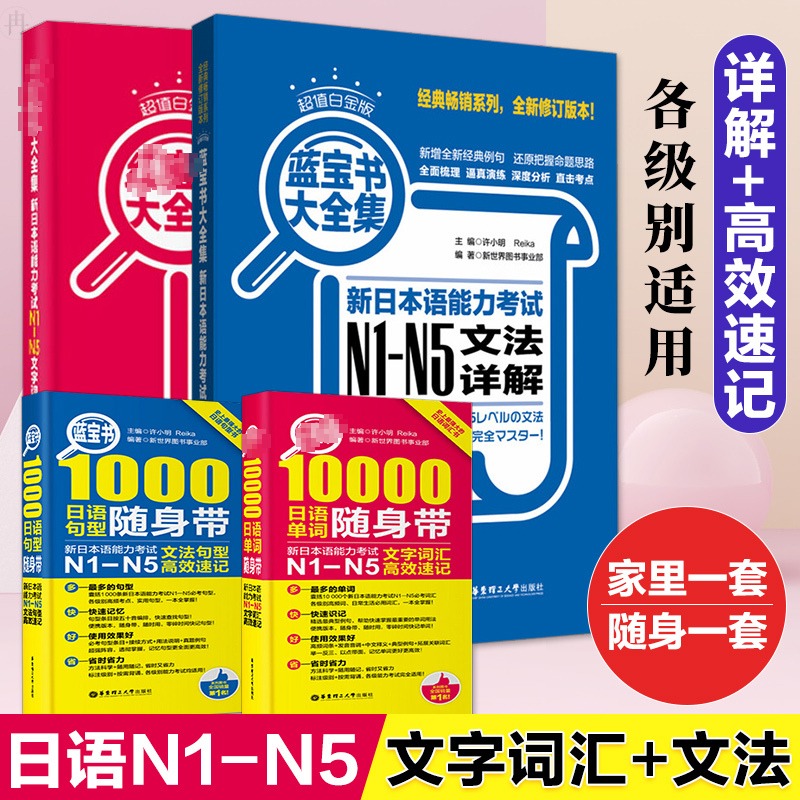 日语红蓝宝书 1000题新日本语能力考试N5N4N3N2N1橙宝书绿宝书文字词汇文法练习详解许小明搭配历年真题试卷单词语法 红蓝宝书NIN2