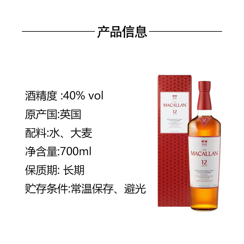 【自营】MACALLAN麦卡伦12年雪莉桶单一麦芽苏格兰威士忌酒700ml