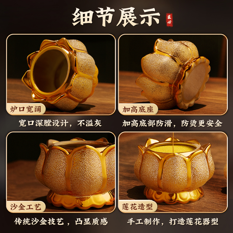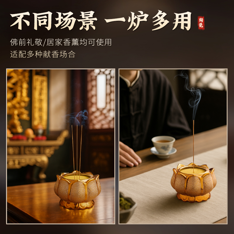 陶瓷莲花香炉供佛家用室内上香供奉观音财神爷插香烧香碗香薰炉
