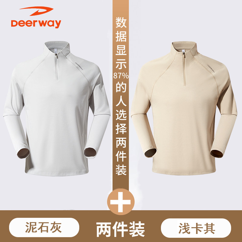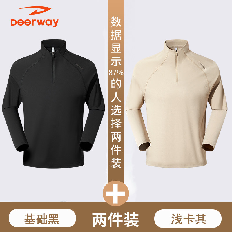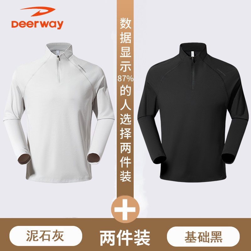 德尔惠秋季男士t恤长袖透气跑步健身速干户外休闲百搭立领运动服